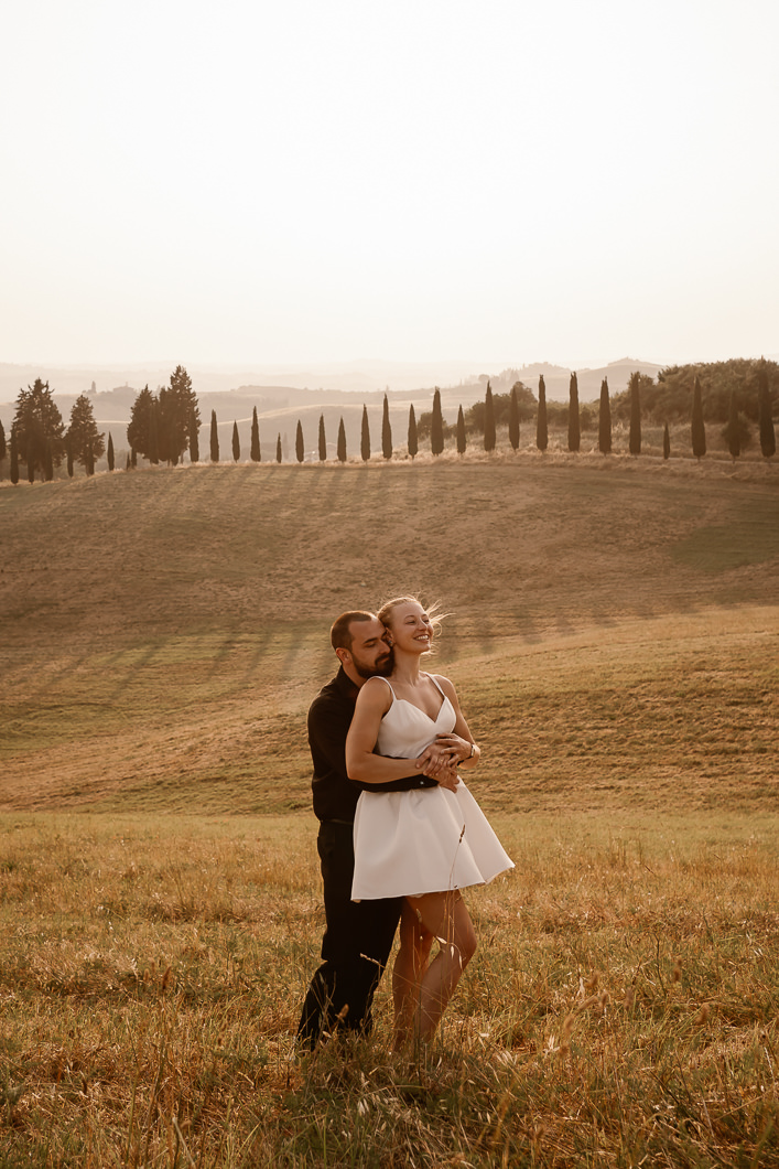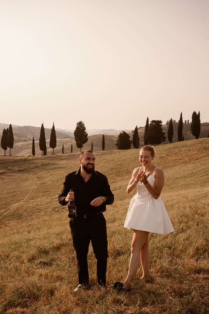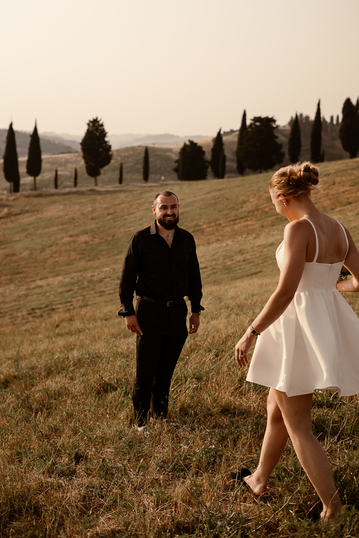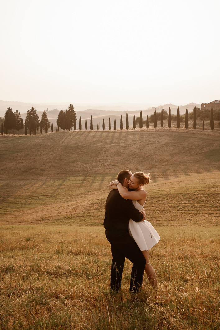 I gently guided them through the moment, helping them find the best light and position to exchange their vows during this emotional sunset elopement in Tuscany. Just the two of them, the warm wind, the view, and their promises , proving that an intimate wedding in Tuscany does not need luxury or extravagance to be unforgettable.