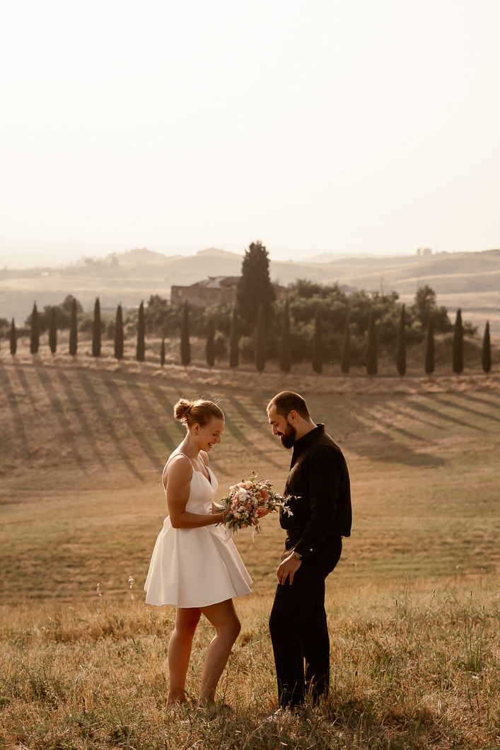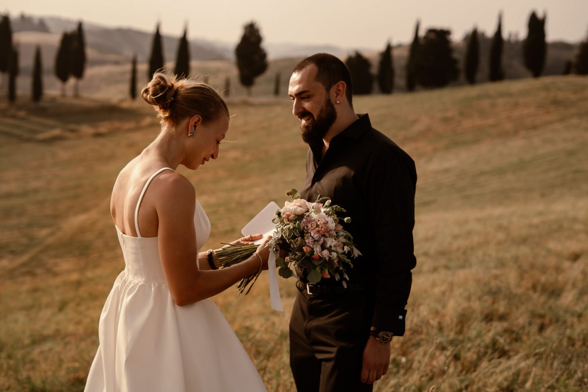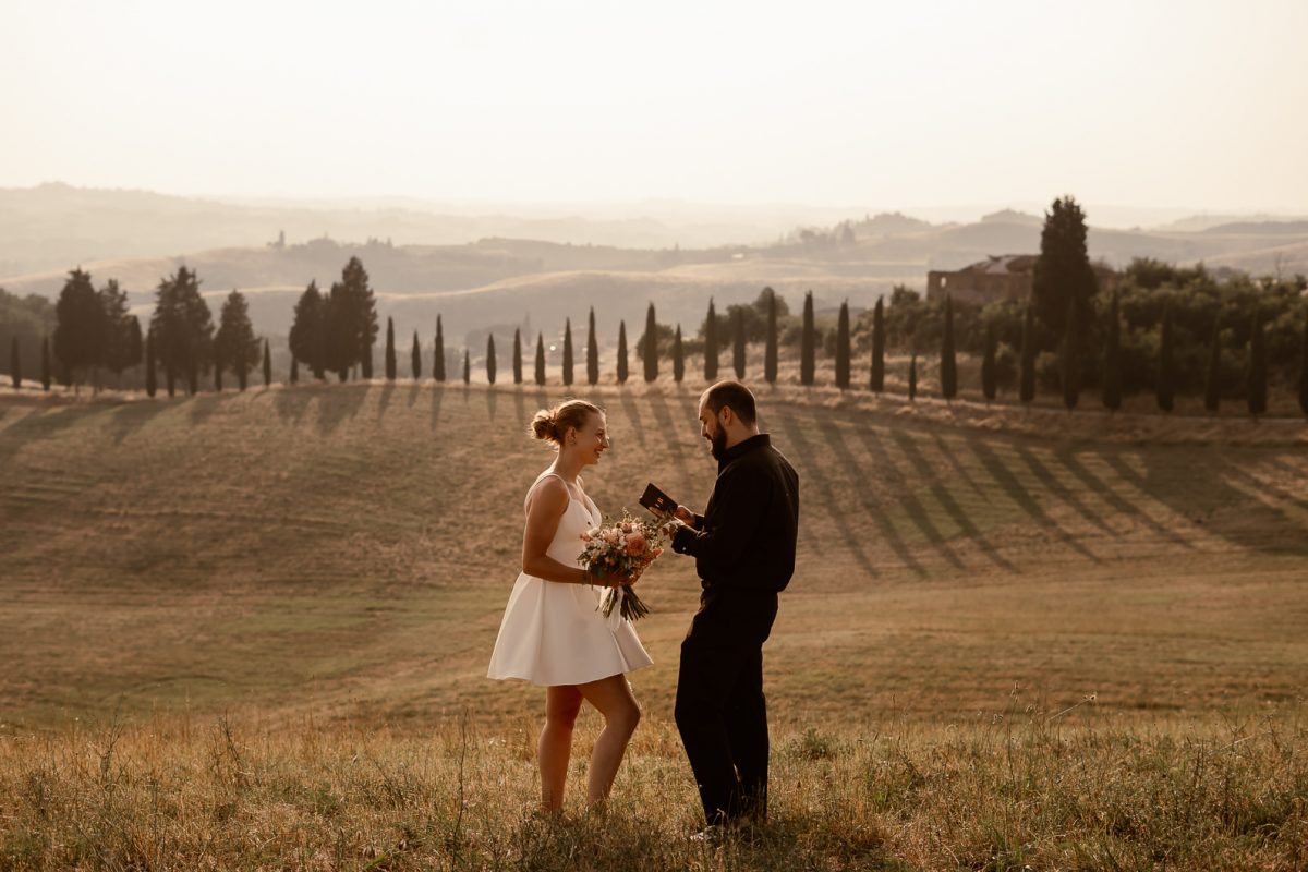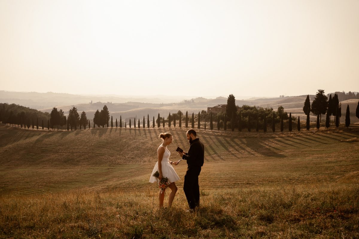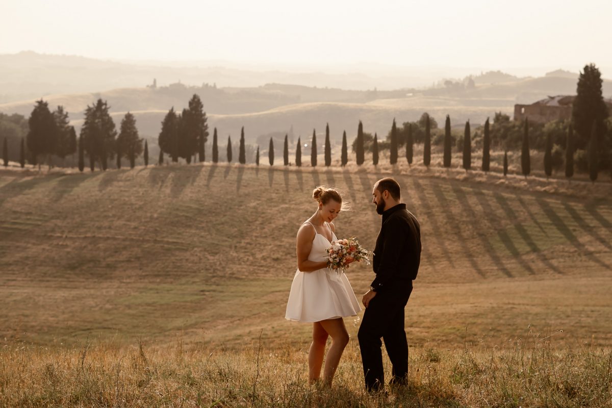 A romantic outdoor elopement in Tuscany at sunset, simple, intimate, and deeply meaningful.