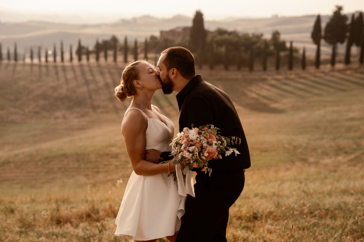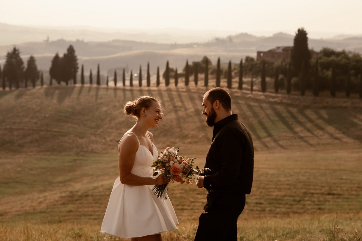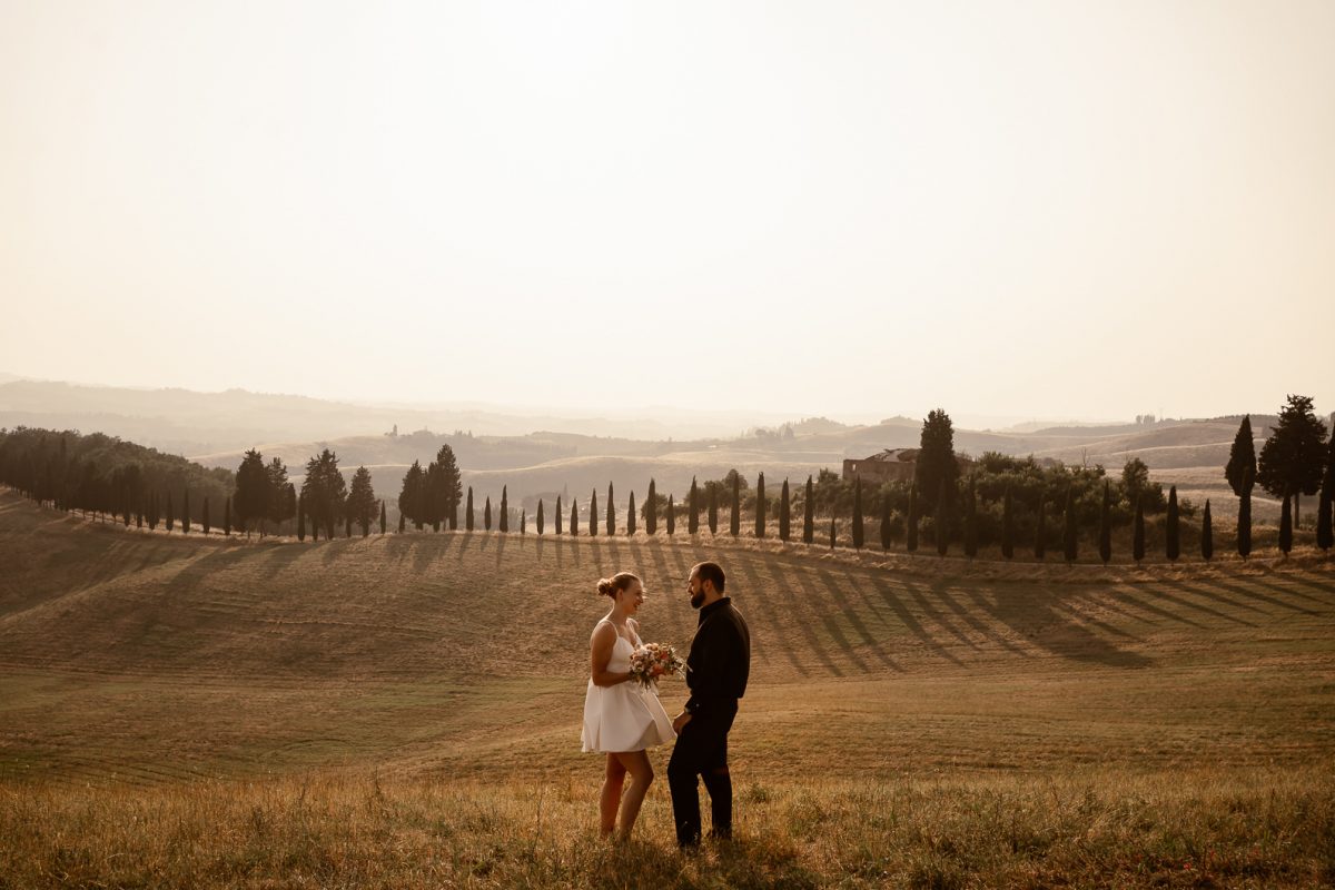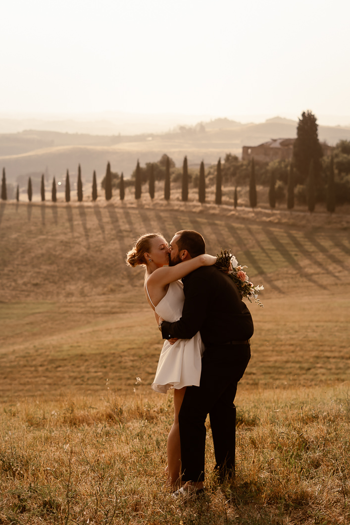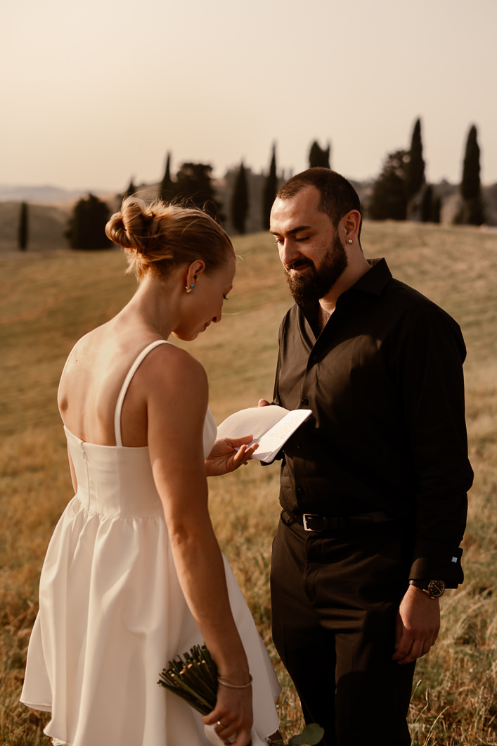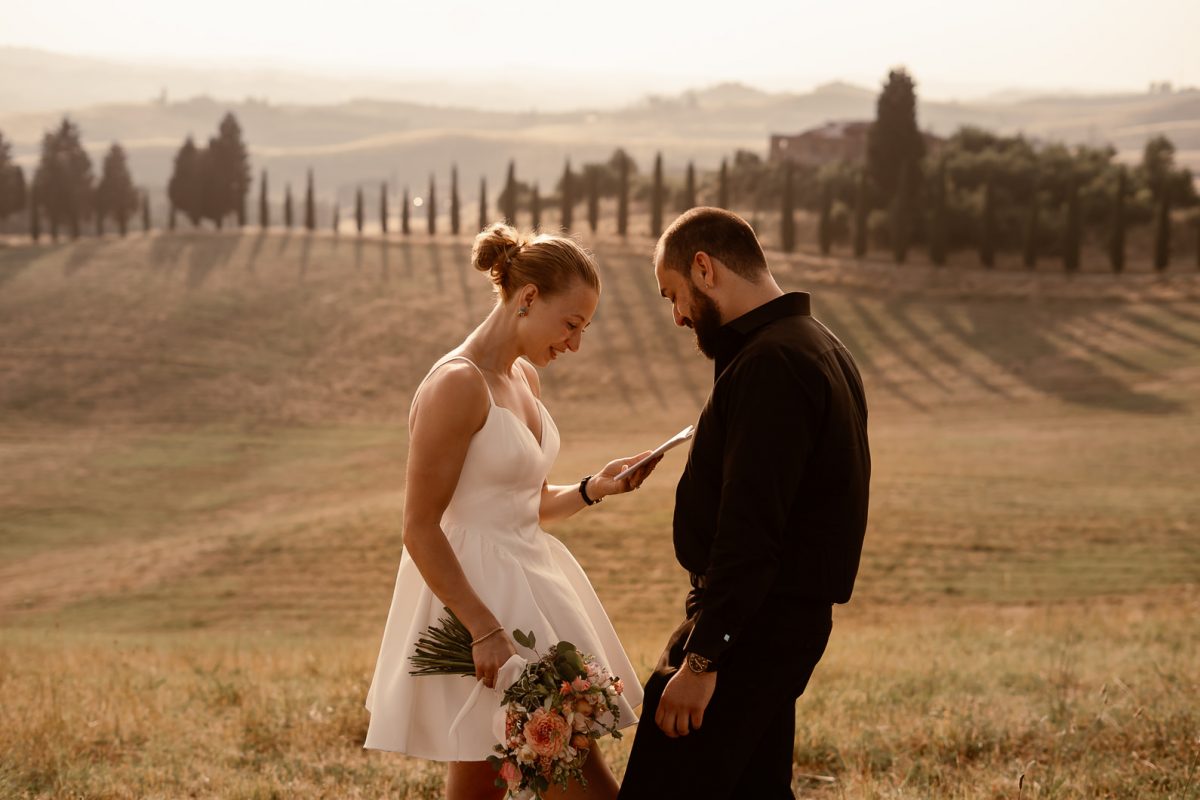 A romantic outdoor elopement in Tuscany at sunset, simple, intimate, and deeply meaningful.