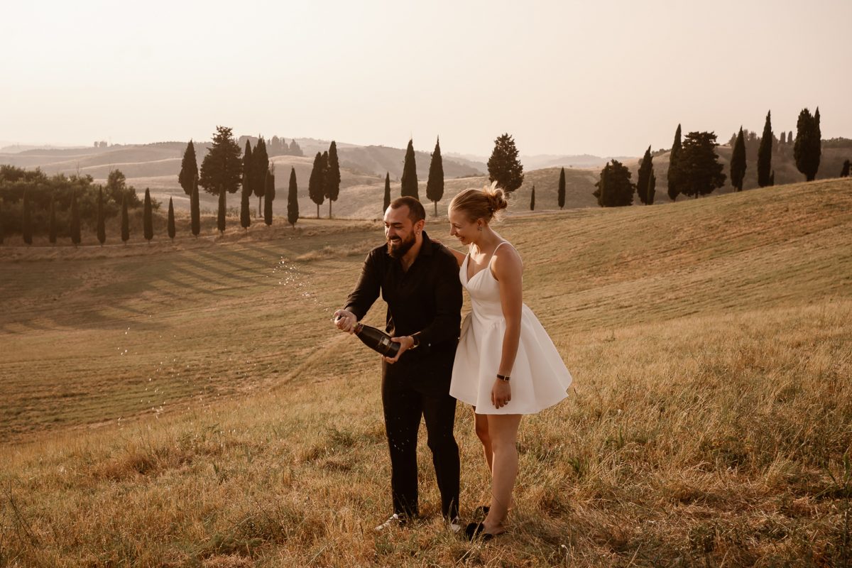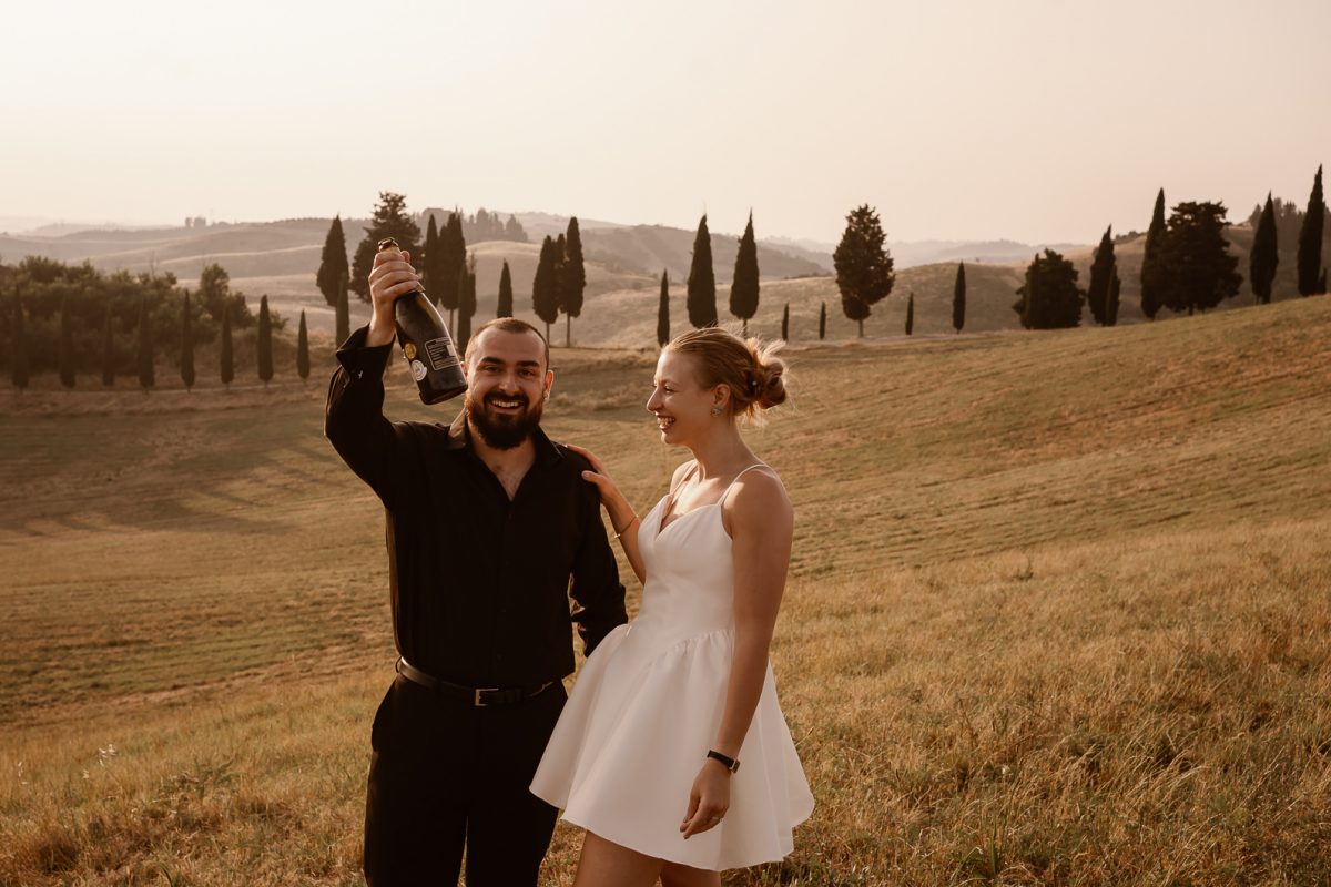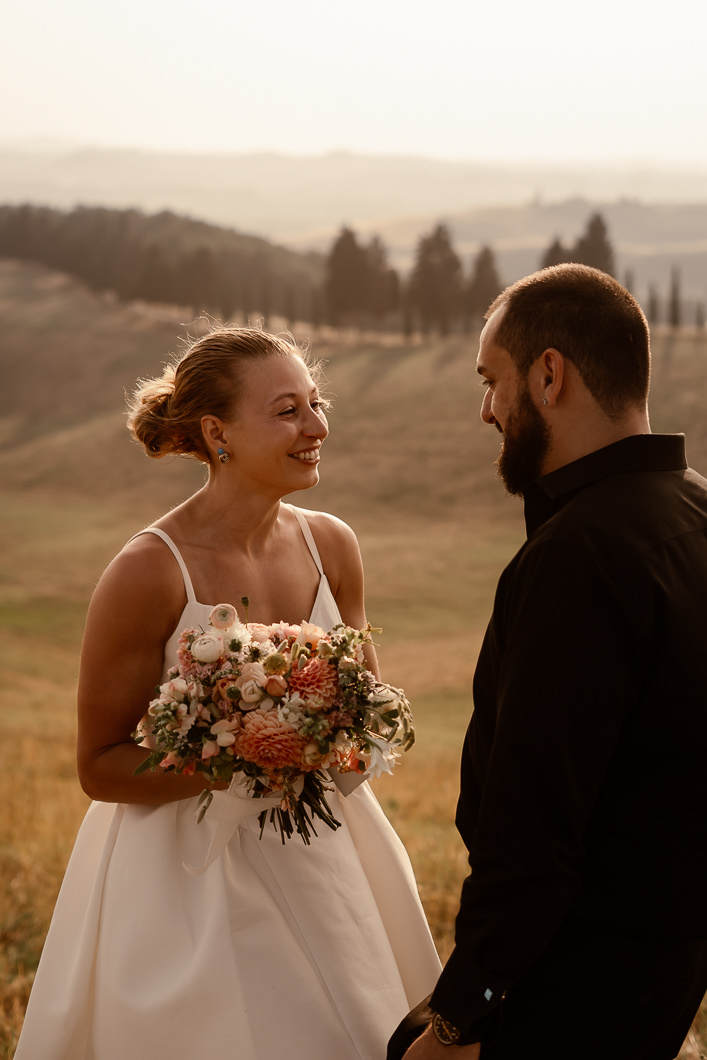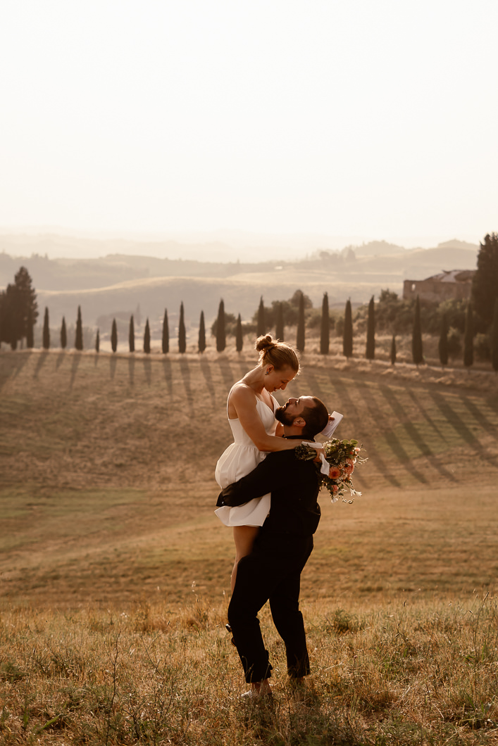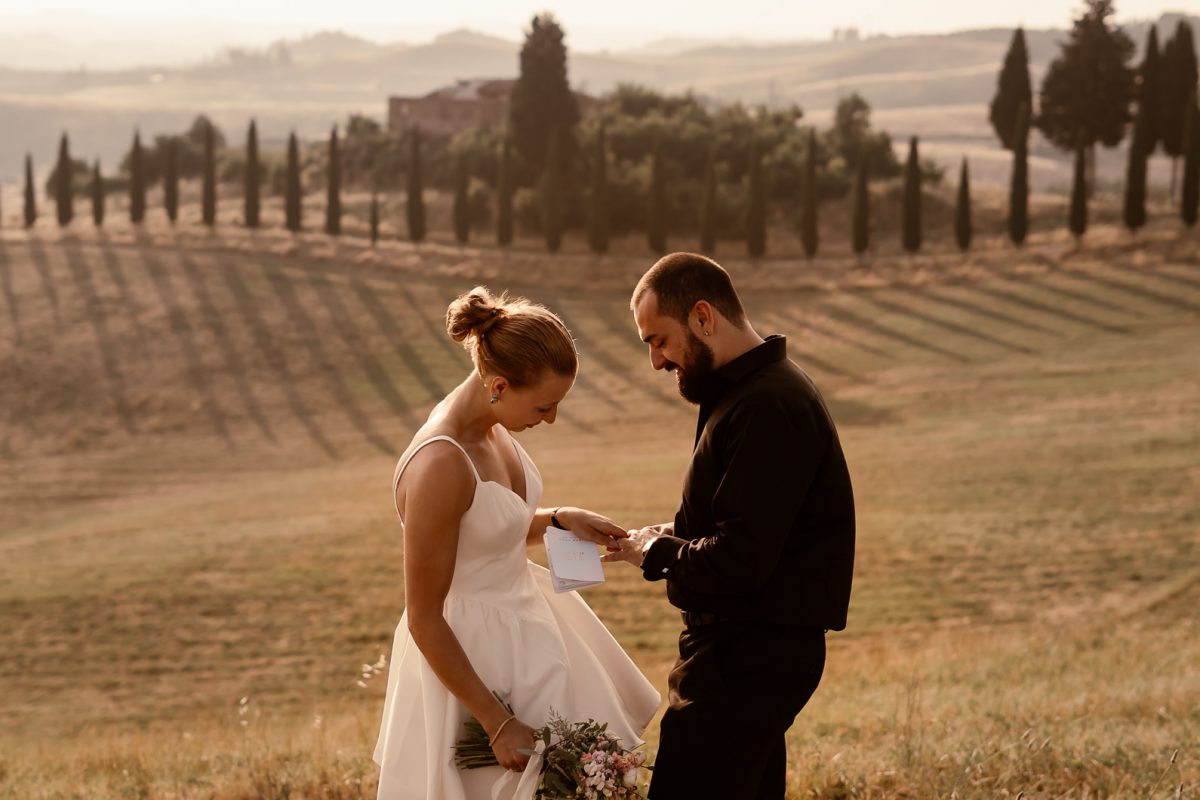 A romantic outdoor elopement in Tuscany at sunset, simple, intimate, and deeply meaningful.